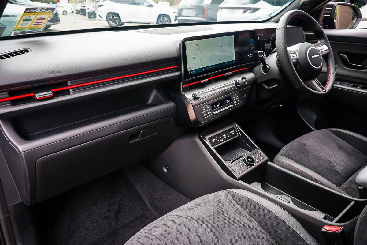 2026 Hyundai Kona Premium N Line ? Style Comfort and Confident Performance Elevate Your Drive with Perth?s Hyundai Dealer of the Year Experience refined performance and bold N Line styling with the 2026 Hyundai Kona Premium N Line Two Point Zero Petrol. Built to deliver everyday confidence premium features and dynamic road presence this compact SUV strikes the perfect balance between comfort practicality and sporty flair. Buy from Western Australia?s most trusted Hyundai dealership and enjoy a seamless ownership experience backed by award winning service and honest advice. ________________________________________ Why Choose the 2026 Kona Premium N Line ________________________________________ Smooth and Efficient Performance ? 2.0 litre Smartstream petrol engine ? Delivers approximately one hundred and ten kilowatts of power and one hundred and eighty newton metres of torque ? Front wheel drive for confident city and highway performance ? Intelligent continuously variable transmission for smooth and efficient driving ? Drive Mode Select including Eco Normal Sport and Snow ? Estimated fuel economy of seven point two litres per one hundred kilometres combined ________________________________________ Premium N Line Interior ? Comfort Meets Sportiness ? Leather and suede N Line sports seats with red stitching ? Heated and ventilated front seats with power adjustable driver seat and lumbar support ? N Line leather wrapped steering wheel and gear selector ? Dual zone climate control with rear air vents ? Twelve point three inch touchscreen infotainment system with satellite navigation ? Wireless Apple CarPlay and Android Auto for seamless connectivity ? Bose eight speaker premium audio system for immersive sound ________________________________________ Smart Technology and Everyday Convenience ? Twelve point three inch digital instrument cluster with N Line display ? Bluelink connected services with remote vehicle functions ? Wireless charging pad and multiple USB C ports ? Smart key with push button start and remote engine start ? Rain sensing wipers and auto dimming rearview mirror ________________________________________ Hyundai SmartSense Safety Technology ? Forward Collision Avoidance Assist with pedestrian detection and junction turning support ? Blind Spot Collision Avoidance Assist for safer lane changes ? Lane Keeping Assist and Lane Following Assist to maintain position ? Smart Cruise Control with Stop and Go ? Rear Cross Traffic Collision Avoidance Assist ? Surround View Monitor and front and rear parking sensors ? Driver Attention Warning and Safe Exit Warning ________________________________________ Buy with Confidence from Perth?s Most Trusted Hyundai Dealer ? Transparent and pressure free sales process ? Highest trade in values across Western Australia ? Extensive stock of new and demonstrator vehicles ? Friendly team focused on honesty integrity and customer satisfaction ________________________________________ Included with Your Kona Premium N Line Two Point Zero ? 7 year unlimited kilometre Hyundai warranty ? Lifetime roadside assistance when serviced with Hyundai ? Lifetime capped price servicing for cost certainty ? Comprehensive safety and mechanical pre delivery inspection ? Best price guarantee on all new and demo stock ________________________________________ In House Finance and Insurance Solutions ? Fast approval with tailored finance options ? Repayment plans suited to your lifestyle and budget ? Finance support for a range of credit profiles ? Access to Hyundai Insurance products onsite ? Professional finance team to guide you through every step ________________________________________ Visit Our Showroom or Book a Mobile Test Drive Located just ten minutes north of Perth CBD Explore the 2026 Kona Premium N Line Two Point Zero Petrol in person Book a mobile test drive and we will bring the vehicle to your home or workplace Trade ins welcome with competitive valuations Delivery available across Western Australia Factory trained Hyundai service technicians onsite ________________________________________ Book Your Test Drive Today Step into premium comfort sporty design and everyday confidence with the 2026 Hyundai Kona Premium N Line Two Point Zero Petrol. Contact us now to arrange your test drive or get a fast no obligation quote from Perth?s leading Hyundai dealership. ________________________________________ Disclaimer Fuel consumption figures are estimates and may vary based on driving conditions load and vehicle configuration. Lifetime roadside assistance is available when servicing with authorised Hyundai dealers at scheduled intervals. Terms and conditions apply.