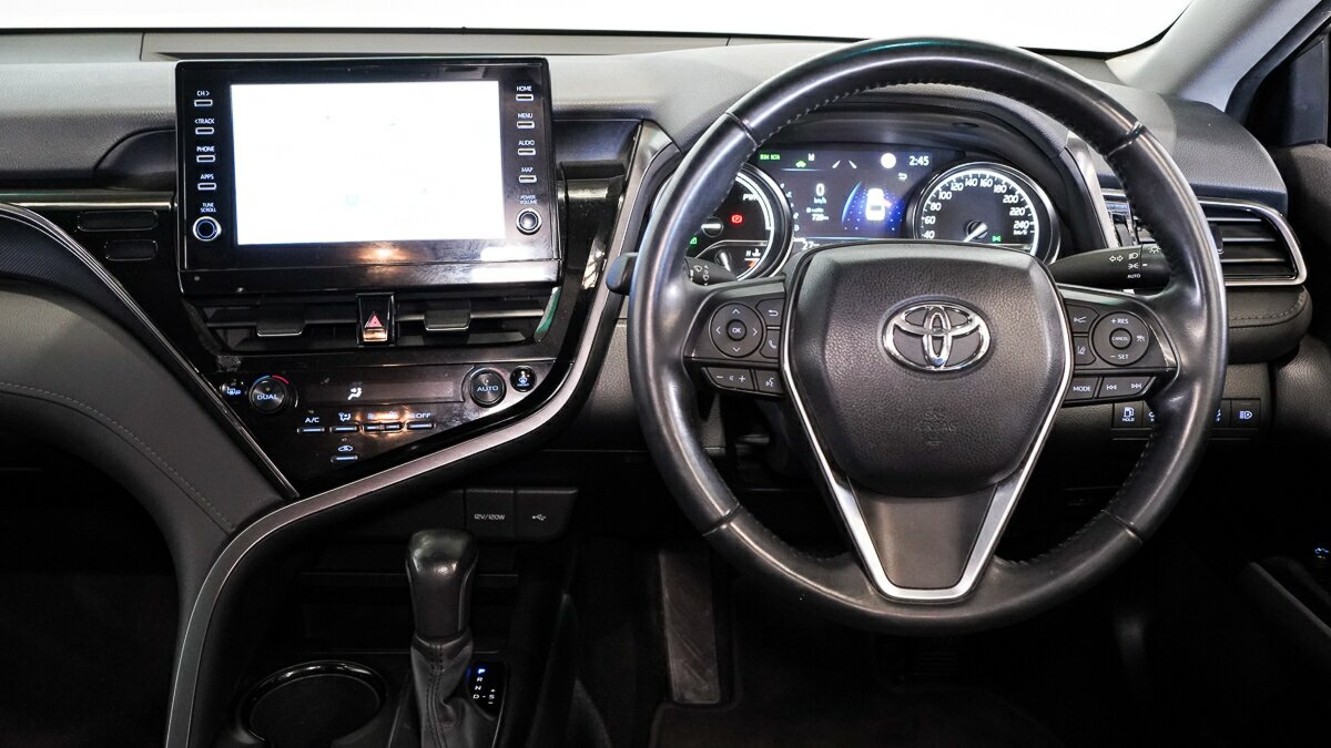 Looking for a reliable, fuel-efficient hybrid? This 2021 Toyota Camry is ready to impress! - Apple CarPlay and Android Auto - Satellite navigation - Electric Seat - Drivers - 17 Inch Alloy Wheels - Workshop inspected The Camry is renowned for its dependability and comfort. With a sleek white paintjob and sports automatic transmission, this vehicle blends performance with elegance. Enjoy seamless integration with Apple CarPlay and Android Auto, get guided every step with the navigation system, and relax with the convenience of an electric drivers seat. The 17-inch alloy wheels add a stylish touch, and having been workshop inspected, its ready for you to drive away with peace of mind. Your next car is waiting. Schedule your test drive today! Welcome to the easy new stress-free way to buy a used car. With hundreds of high-quality used cars to choose from - all covered by extensive safety checks, a 7-day money-back guarantee and 3-months warranty - you are in complete control from start to finish. Our helpful team are always on hand to answer your questions, take you through our easy finance options and provide an estimated trade-in price for your current vehicle.